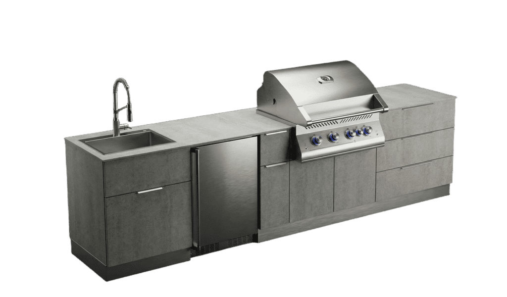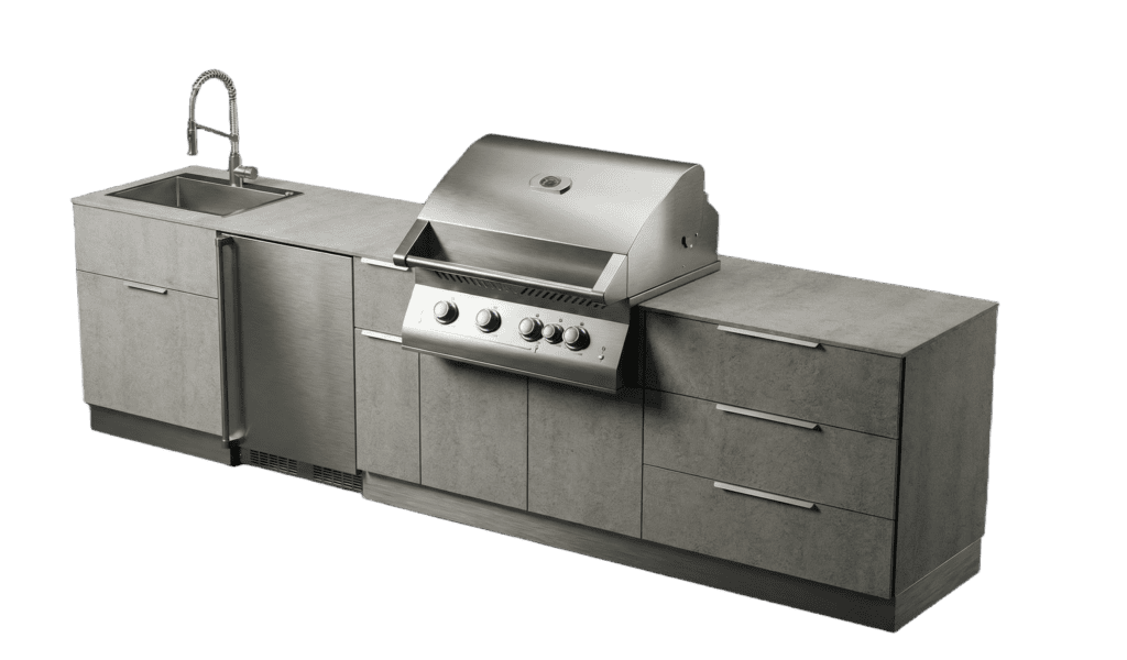 • Outdoor Refrigeration: 5.5 cu. ft. Napoleon fridge with digital temperature control.