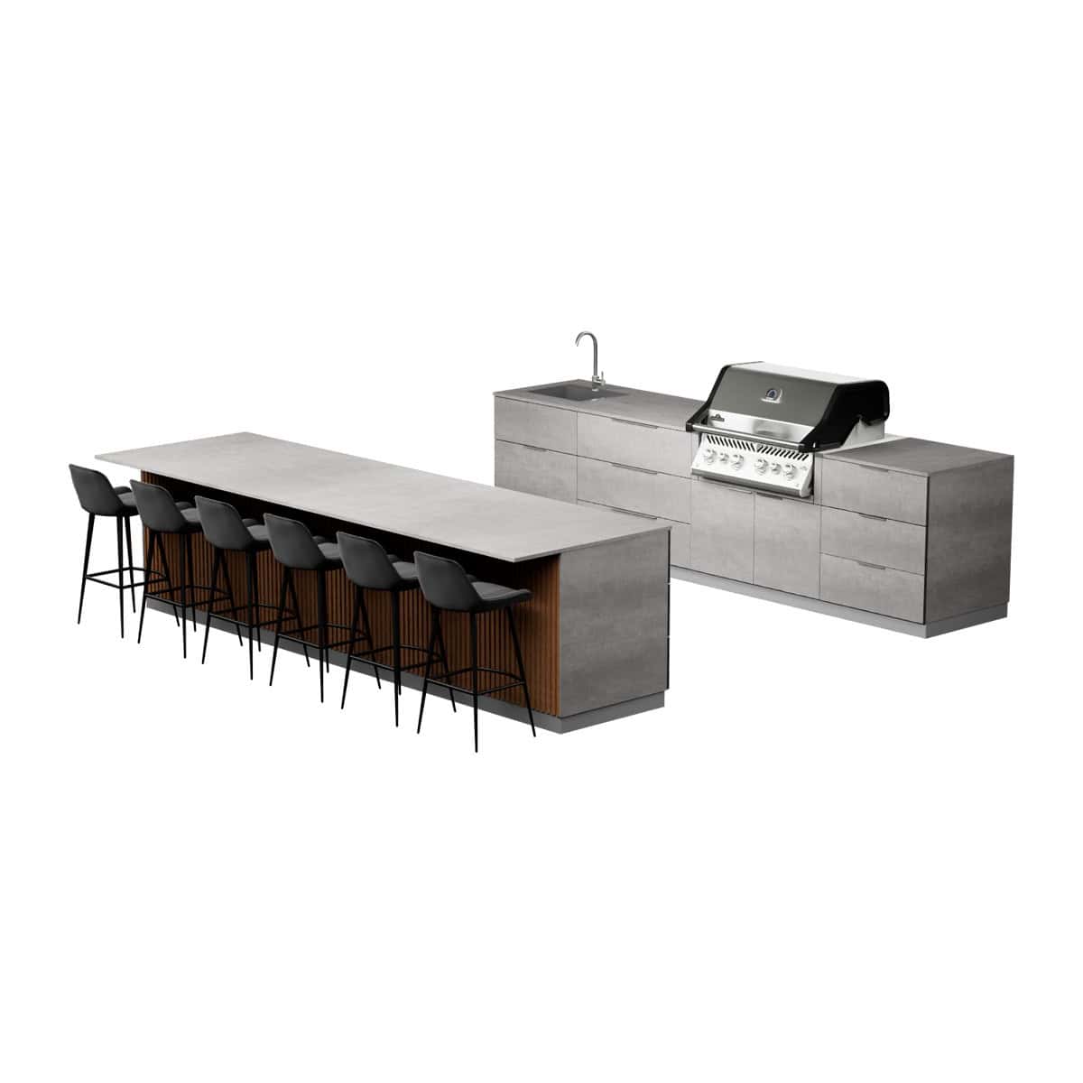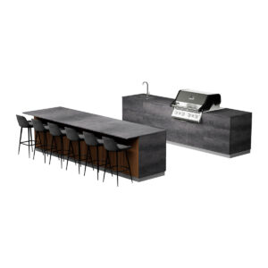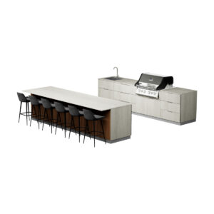 • Grill Cabinet (35.43 in / 90 cm): Accommodates Napoleon Built-In 500 Series 32” grill with 48,000 BTUs, infrared rear rotisserie burner, and stainless-steel WAVE™ cooking grids. Includes soft-close double doors and spacious internal storage. Quantity: 1