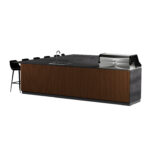 • Grill Cabinet (35.43 in / 90 cm): Accommodates Napoleon Built-In 500 Series 32” grill with 48,000 BTUs, infrared rear rotisserie burner, and stainless-steel WAVE™ cooking grids. Includes soft-close double doors and spacious internal storage.